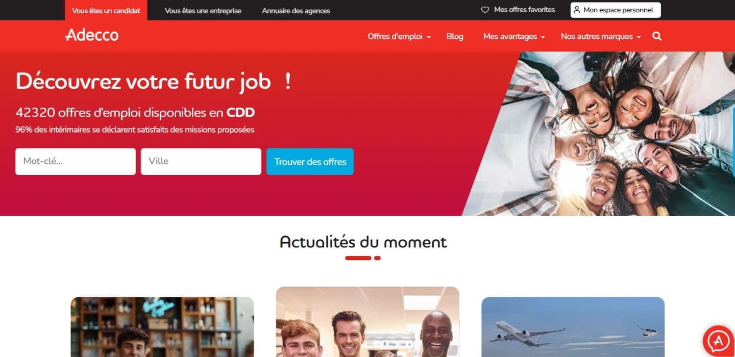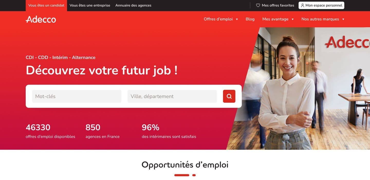 Avec des dizaines de milliers d'utilisateurs arrivant chaque jour sur la page d'accueil d'Adecco France, l'expérience était devenue chargée, dense en texte et difficile à parcourir.